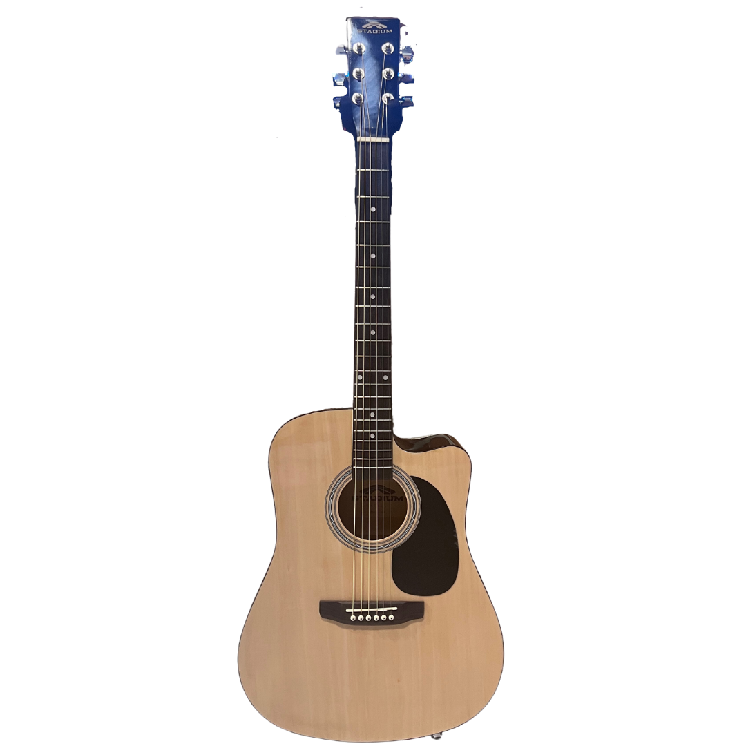 La guitarra acústica Stadium es una excelente guitarra para aquellos que quieran invertir poco en un instrumento y tener un buen sonido que los acompañe. Esta guitarra incluye su sistema de ecualizador con 3 bandas de ecualización.